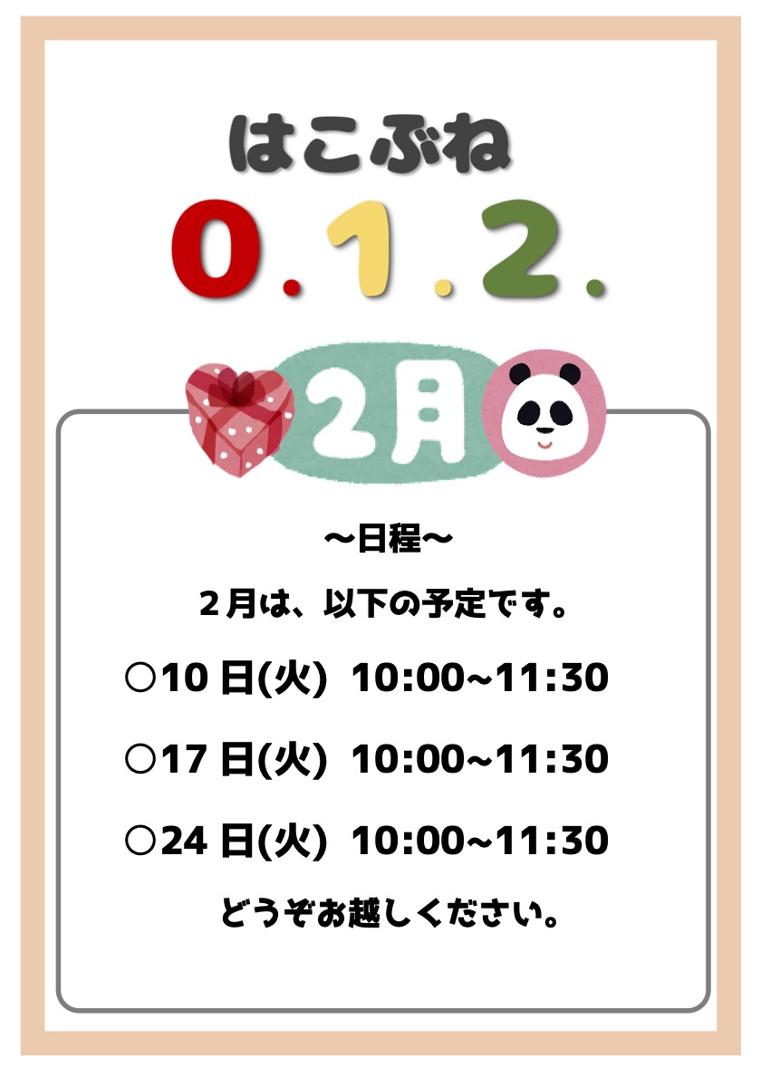 2026年も、あっという間に2月になりました。毎日寒い日が続きますが、ご健康が守られますようにお祈りしています。 さて、2月のはこぶね0.1.2.の活動日程についてお知らせします。今月は10日(火)にお誕生会を予定しています。 【日程】・10日(火)10:00~11:30(お誕生 […]