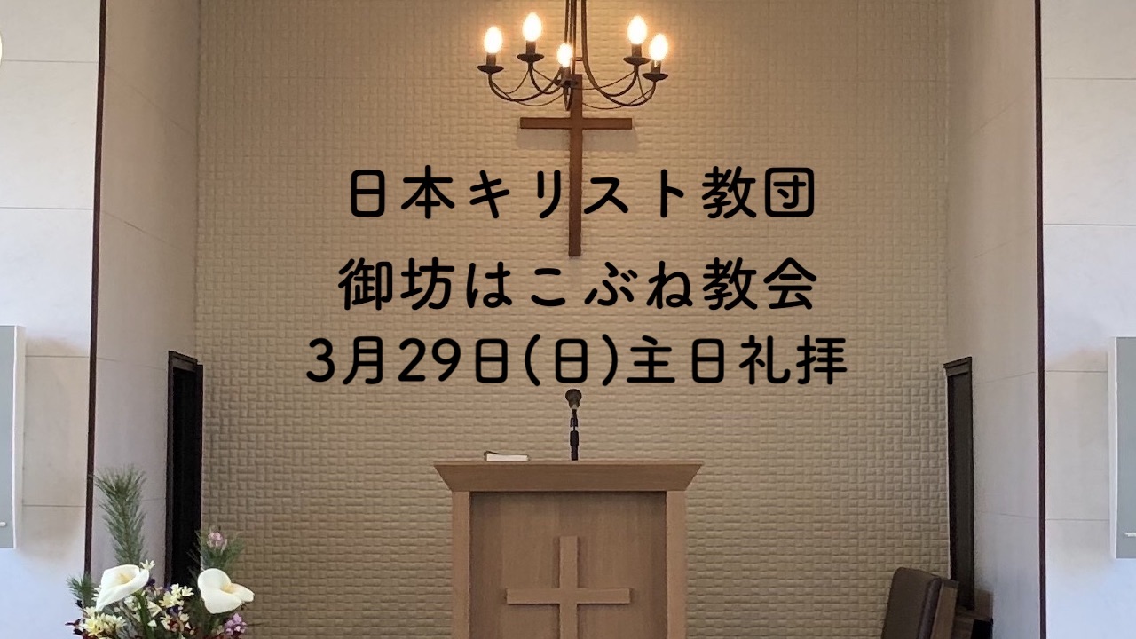 3月29日(日) 聖餐礼拝(第一礼拝および託児はお休み)聖書:ルカによる福音書23章32-43節 説教:『父よ、彼らをお赦しください』吉川良牧師 讃美歌:546、348、532、540 礼拝はYoutubeで配信も行っています。こちらからご覧ください。